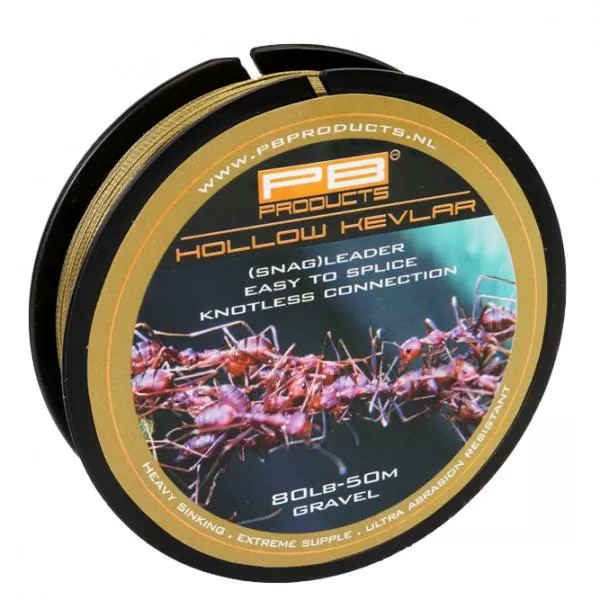 Ben je opzoek naar een snagleader voor de meest extreme situaties? Zoek niet verder met de PB Products Hollow Kevlar 80LB. Deze holle voorslag is eenvoudig te splicen met bijvoorbeeld PB Products Hollow Sinking Spliceable Mainline. Op deze manier heb je geen voorslagknoop, perfect voor als je tussen de planten of in het wier zit te vissen. De Hollow Kevlar is extreem slijtvast. Doordat deze snagleader geleverd wordt op klossen van 50m kun je jouw hengels meerdere keren voorzien van verse voorslag.