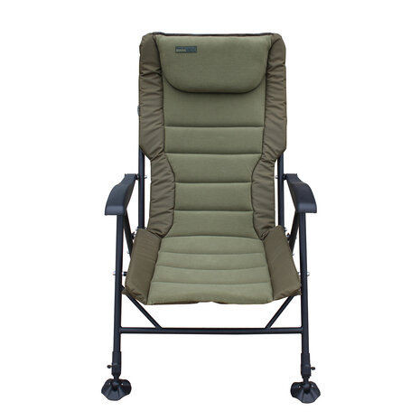 Ben jij opzoek naar een comfortabele karperstoel? Dat is de Sonik Bank-Tek Recliner Armchair. Deze luxe karperstoel is voorzien van een hoge rugleuning mét hoofdkussen. Doordat de stoel voorzien is van uitschuifbare modderpoten is deze stoel óók op de meest ruige stekken goed neer te zetten. De rugleuning is in 8 standen naar achteren te klappen, zo kun je zelfs even comfortabel de ogen dicht doen na een drukke nacht met veel vis;). De stoel weegt maar 6kg, dat maakt hem ideaal om lange afstanden naar de stek te overbruggen. De rugleuning is voorzien van een gewatteerde fleecekussen. Met een zithoogte van 36-48cm weet je zeker dat je comfortabel kunt zitten.
